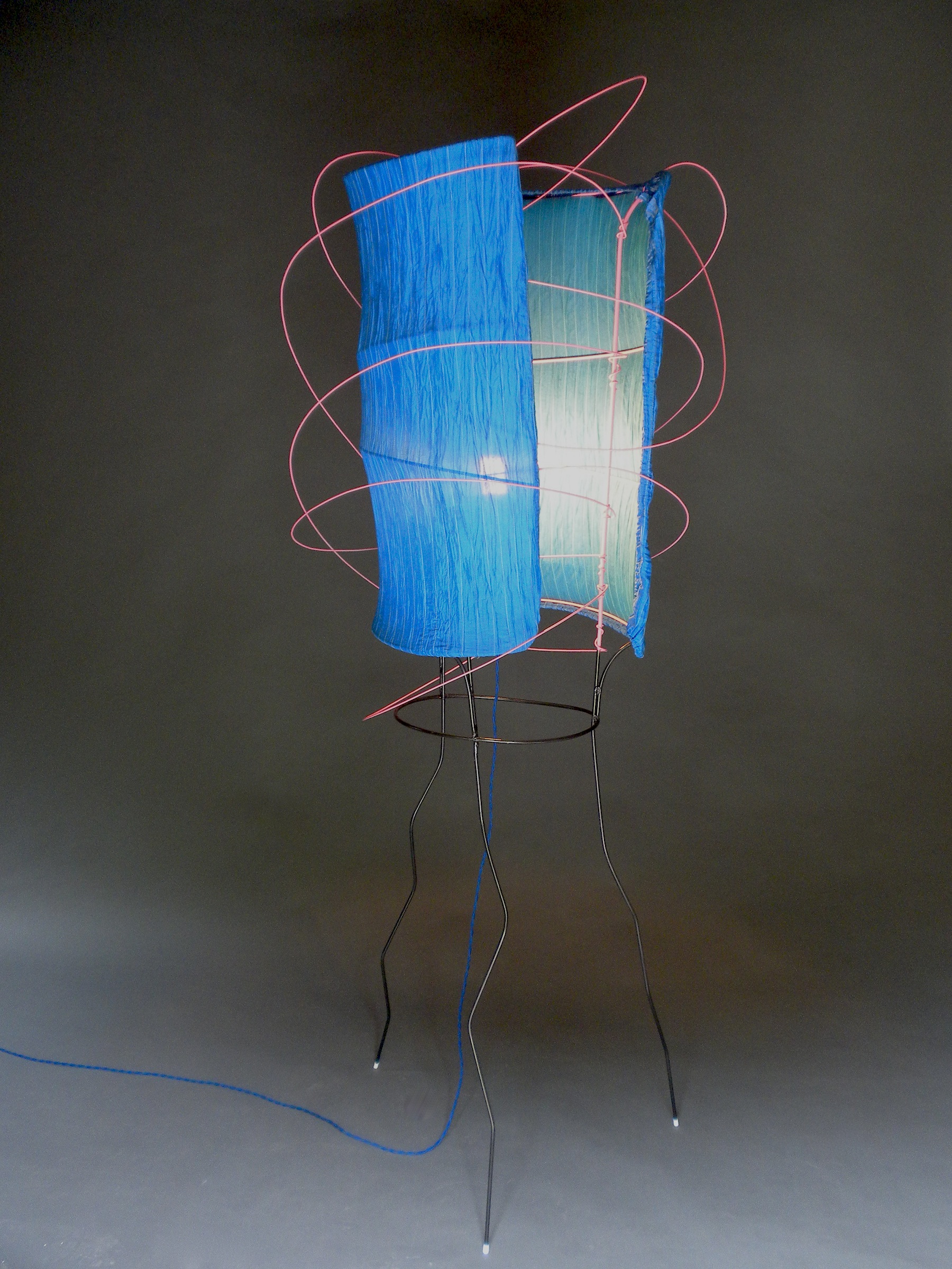 I've been very excited how my Lighted Sculpture Series has been evolving in my studio lately. The “Red Tower” and the “Yellow Rocket” are the first ones of this re-explored mixed medium series of fabric, steel, and electricity.